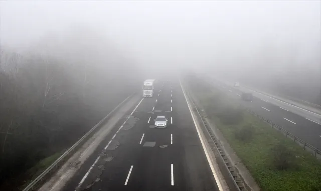 Düzce — Anadolu Otoyolu'nun Düzce kesiminde sis görüş mesafesini düşürdü.