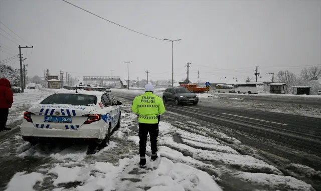 Düzce Haberleri (AA) - D-100 kara yolunun Bolu Dağı geçişi Ankara istikametinde, kar yağışı nedeniyle ağır tonajlı araçların geçişine izin verilmiyor.