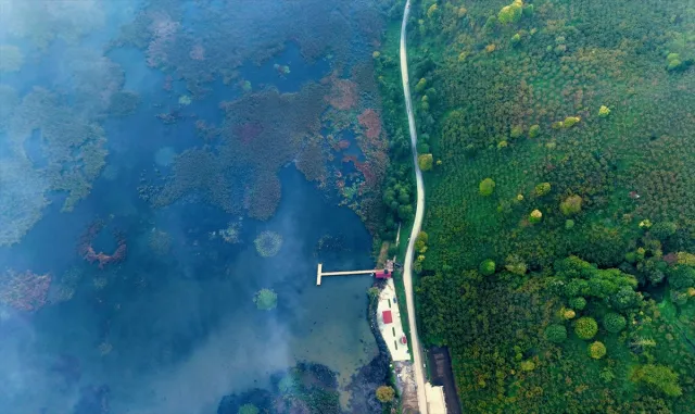 Düzce - Düzce'deki Efteni Gölü Kuş Cenneti havzasında, sisler arasında kalan yeşil, sarı ve kahverengiye bürünen ağaçlar güzel görüntüler oluşturdu.