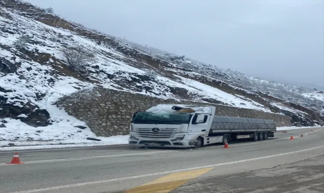Gümüşhane'de üzerine kaya parçası düşen tırın sürücüsü yaralandı
