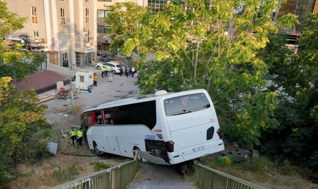 İstanbul Haberleri - Maltepe'de kontrolden çıkan servis otobüsünün köprülü kavşaktan düşmesi sonucu 1'i ağır 8 kişi yaralandı.Sabah saatlerinde, Başöğretmen Caddesi'nden D-100 kara yolu istikametine seyreden 34 LCB 031 plakalı servis otobüsü, Maltepe Köprüsü kavşağında aydınlatma direği ve yön levhalarına çarptı.Çarpmanın şiddetiyle bariyerleri aşan otobüs, köprülü kavşakta yaklaşık 10 metre yükseklikten şarampole düştü. İhbar üzerine kaza yerine itfaiye, polis ve Sağlık ekipleri sevk edildi.Kazada yaralanan 1'i ağır 8 kişi bulundukları yerden çıkarılarak ambulanslarla hastaneye kaldırıldı.Çevrede güvenlik önlemi alan ekipler, otobüsü bulunduğu yerden kaldırdı.Vinç yardımıyla kaldırılmaya çalışılan otobüsün halatların kopması nedeniyle düşmesi Cep telefonu kamerasınca kaydedildi.
