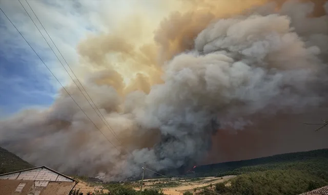 Bursa Haberleri - Sakarya'nın Geyve ilçesindeki ormanlık alanda çıkan ve Bilecik tarafına sıçrayan yangının söndürülmesi için çalışmalar sürüyor.Sakarya'nın Hacılar Mahallesi'nde ormanlık alanda çıkan yangın, Bilecik'in Osmaneli ilçesi sınırını geçti.Alevler dün tahliye edilen Osmaneli'ye bağlı Kızılöz köyüne yaklaştı.Bölgenin sarp yapısı nedeniyle iş makineleriyle yol açmaya çalışan ekipler, yangının ilerleyişini durdurmak için yoğun çaba sarf ediyor.Tahliye edilen Kızılöz köyündeki bazı vatandaşlar, evdeki eşyalarını traktörlere yükleyerek güvenli bölgeye taşıyor.Orman Bölge Müdürlüğü ekipleri ve itfaiye yangına karadan, uçak ve helikopterler de havadan müdahalede bulunuyor.- Büyükyenice köyü de tahliye ediliyorAlevlerin yaklaşması nedeniyle Büyükyenice köyü de ekiplerce boşaltılıyor.Jandarma ekiplerince bölgede anons yapılarak alevlerin yaklaştığı köyün boşaltılması istendi.Bölge sakinleri bir yandan evlerden eşyalarını traktörlerle taşırken diğer yandan da büyükbaş ve küçükbaş hayvanlarını kamyonetlere yüklüyor.Ayrıca 100'ün üzerinde bölge sakini traktörleriyle yangının ilerleyişini durdurmak ve ekiplere destek olmak için tarlalarını sürüyor.Bazı köylüler de traktörlerin arkasına bağladıkları sulama tankerleriyle yangının söndürülmesi için ekiplere yardımcı oluyor.