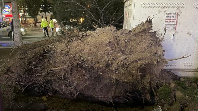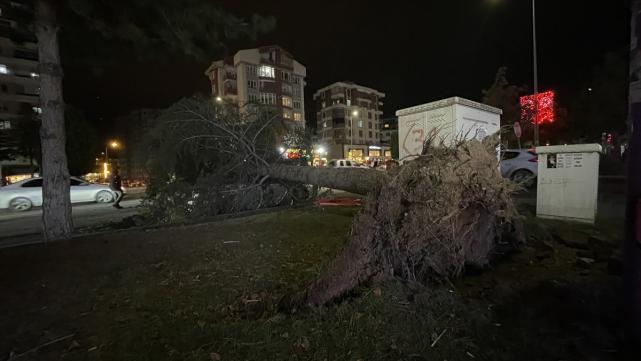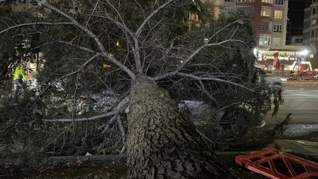 Bahçelievler Mahallesi Atatürk Bulvarı'ndaki bir çam ağacı, kuvvetli rüzgar nedeniyle kökünden ayrıldı.