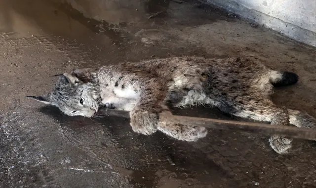 Sivas Haberleri — Sivas'ın Hafik ilçesinde yol kenarında yaralı halde bulunan vaşak tedavi altına alındı.Hafik ilçesine bağlı Yarhisar köyü yakınlarında bir tır şoförü yol kenarında yaralı bir hayvan görerek durumu Hafik Belediyesi ekiplerine bildirdi.İhbar üzerine bölgeye giden belediye personeli, arka ayakları kırık hayvanın vaşak olduğunu tespit etti.Yaralı hayvanı güvenli şekilde muhafaza altına alan ekipler, vaşağı ilk müdahale ve koruma süreci için geçici olarak belediye tesislerine getirdi.
