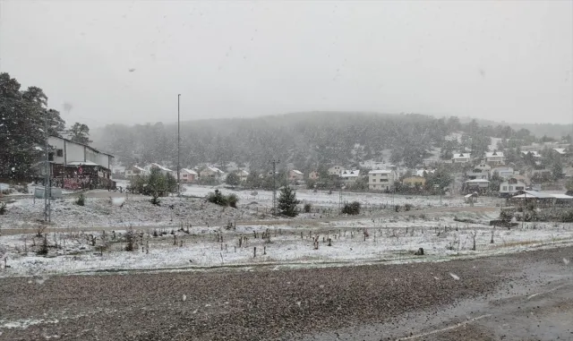 Sivas'ta çam ağaçlarıyla kaplı Eğriçimen Yaylası'na kar yağdı
