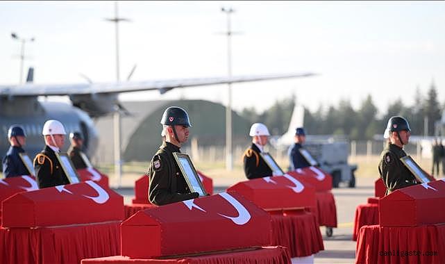 Ankara Adli Tıp Kurumunda işlemlerinin tamamlanmasının ardından şehitlerin naaşları, Mürted Hava Üssü'ndeki askeri tören alanına götürülmek üzere yola çıktı. Şehitler için Ankara'daki Mürted Hava Meydan Komutanlığı'nda tören düzenlendi.Törende, saygı duruşunda bulunuldu, Kur'an-ı Kerim tilaveti yapıldı. Daha sonra Diyanet İşleri Başkan Yardımcısı Hafız Osman Şahin, şehitler için dua etti.Künyeleri okunduktan sonra uçaklara taşınan şehitlerin naaşları memleketlerine uğurlandı.Törene, TBMM Başkanı Numan Kurtulmuş, Milli Savunma Bakanı Yaşar Güler, Aile ve Sosyal Hizmetler Bakanı Mahinur Özdemir Göktaş, milletvekilleri, TSK Komuta Kademesi, Ankara Valisi Vasip Şahin, Azerbaycan Hava Kuvvetleri Komutanı Tümgeneral Namig İslamzade, Azerbaycan'ın Ankara Büyükelçisi Reşad Mammadov ile şehit askerlerin aileleri katıldı.Şehit askerlerin kimlik bilgileri ise şu şekilde:"Hava Pilot Yarbay Gökhan Korkmaz, Hava Pilot Binbaşı Serdar Uslu, Hava Pilot Binbaşı Nihat İlgen, Hava Pilot Üsteğmen Cüneyt Kandemir, Hava Uçak Bakım Üsteğmen Emre Mercan, Hava Uçak Bakım Astsubay Kıdemli Başçavuş Nuri Özcan, Hava Uçak Bakım Astsubay Kıdemli Başçavuş Ümit İnce, Hava Uçak Bakım Astsubay Başçavuş Hamdi Armağan Kaplan, Hava Uçak Bakım Astsubay Başçavuş Burak Özkan, Hava Uçak Bakım Astsubay Başçavuş İlker Aykut, Hava Uçak Bakım Astsubay Başçavuş Akın Karakuş, Hava Uçak Bakım Astsubay Başçavuş Emrah Kuran, Hava Uçak Bakım Astsubay Başçavuş Ramazan Yağız, Hava Uçak Bakım Astsubay Üstçavuş Emre Altıok, Hava Uçak Bakım Astsubay Üstçavuş Berkay Karaca, Hava Uçak Bakım Astsubay Üstçavuş Burak İbbiği, Hava Uçak Bakım Astsubay Üstçavuş İlhan Ongan, Hava İkmal Astsubay Kıdemli Çavuş Ahmet Yasir Kuyucu, Hava Ulaştırma Uzman Çavuş Cem Dolapci, Hava Ulaştırma Uzman Çavuş Emre Sayın"